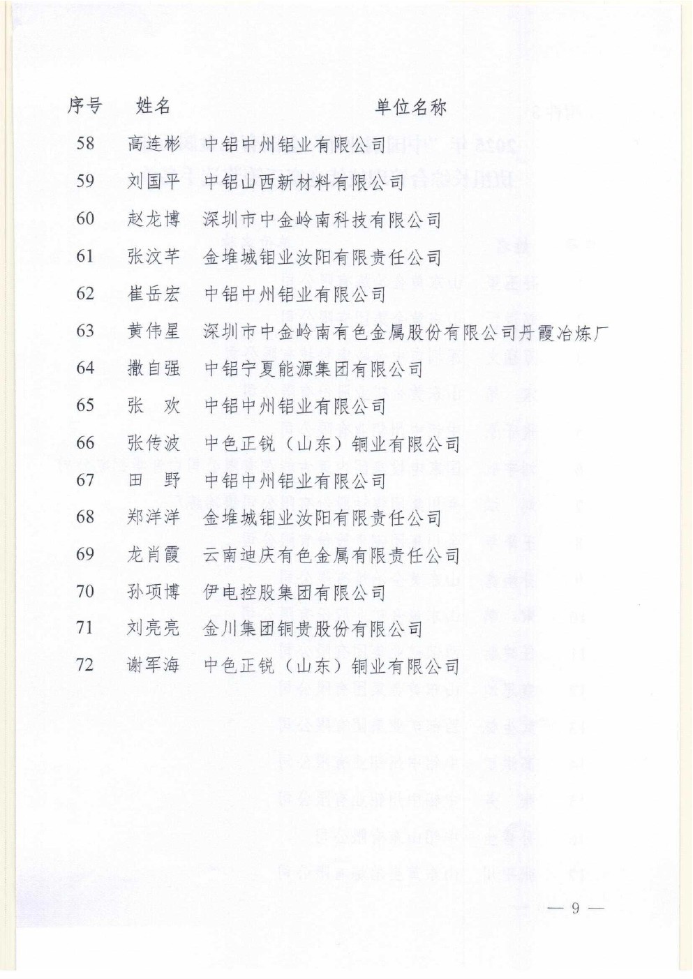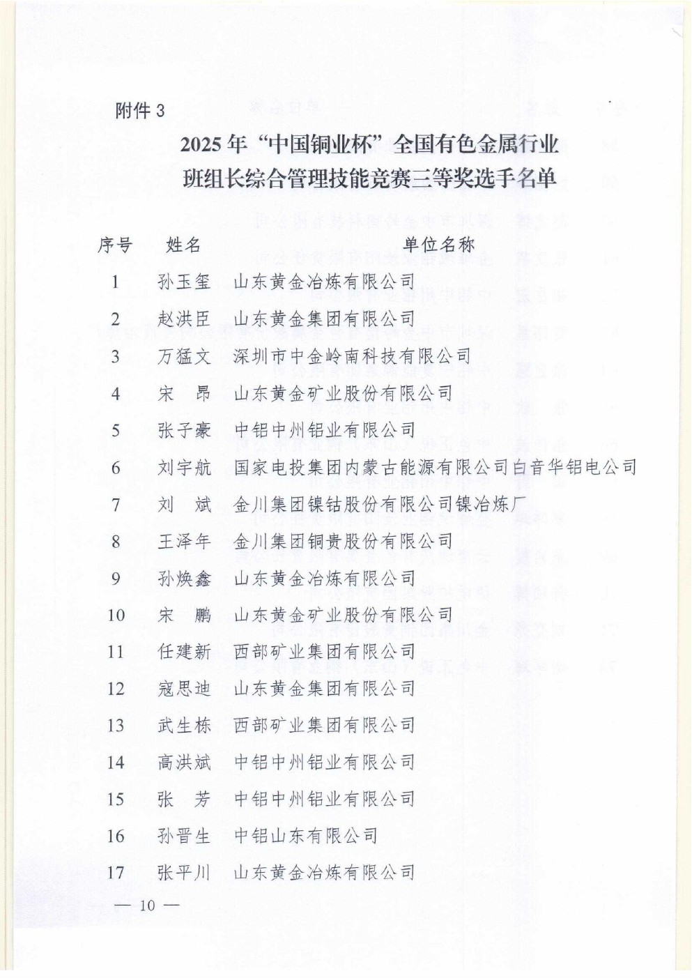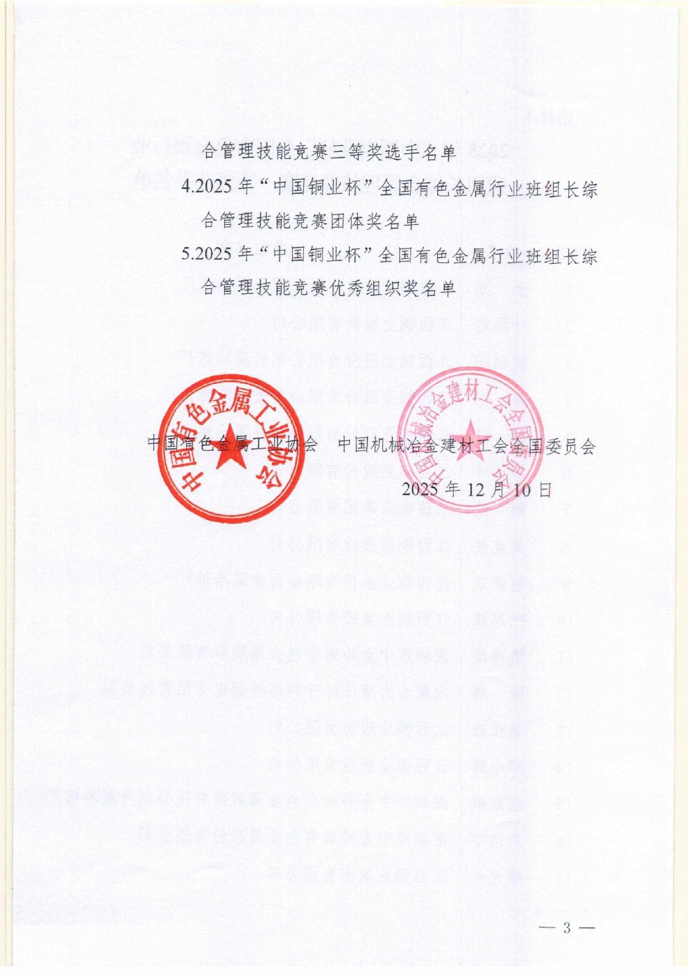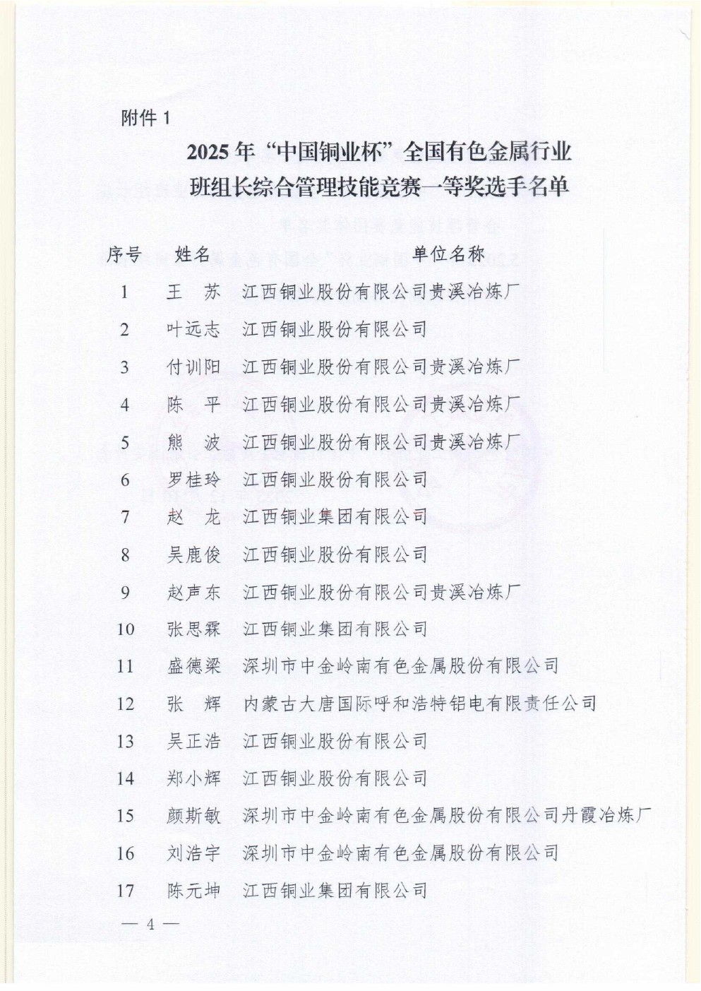 关于2025年“中国铜业杯”全国有色金属行业班组长综合管理技能竞赛获奖结果的通报